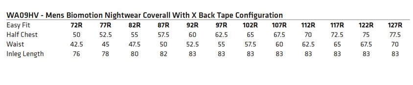 AIW WA09HV Mens biomotion nightwear coverall with x back tape configuration