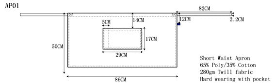 Description: Hard wearing with pocket & adjustable neck strap. Size: (w)86 x (h)50 cm.