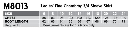 Benchmark M8013 Women's Fine Chambray 3/4 Sleeve Shirt