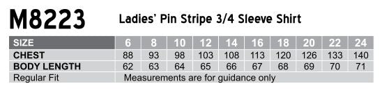 Benchmark M8223 Women's Pin Stripe 3/4 Sleeve Shirt