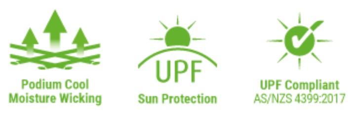 - Podium cool moisture wicking fabric designed to help keep you cool and dry