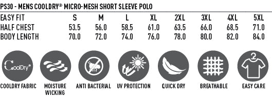 Fabric: CoolDry® Mesh 165gsm - 100% Polyester.