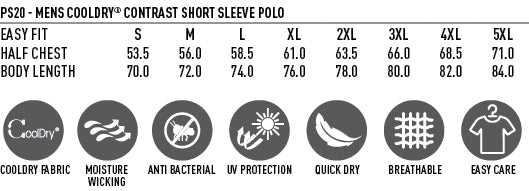 Fabric: CoolDry® Mesh 165gsm - 100% Polyester.