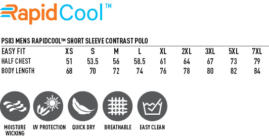 Fabric: Rapid Cool 160gsm - 100% Polyester.